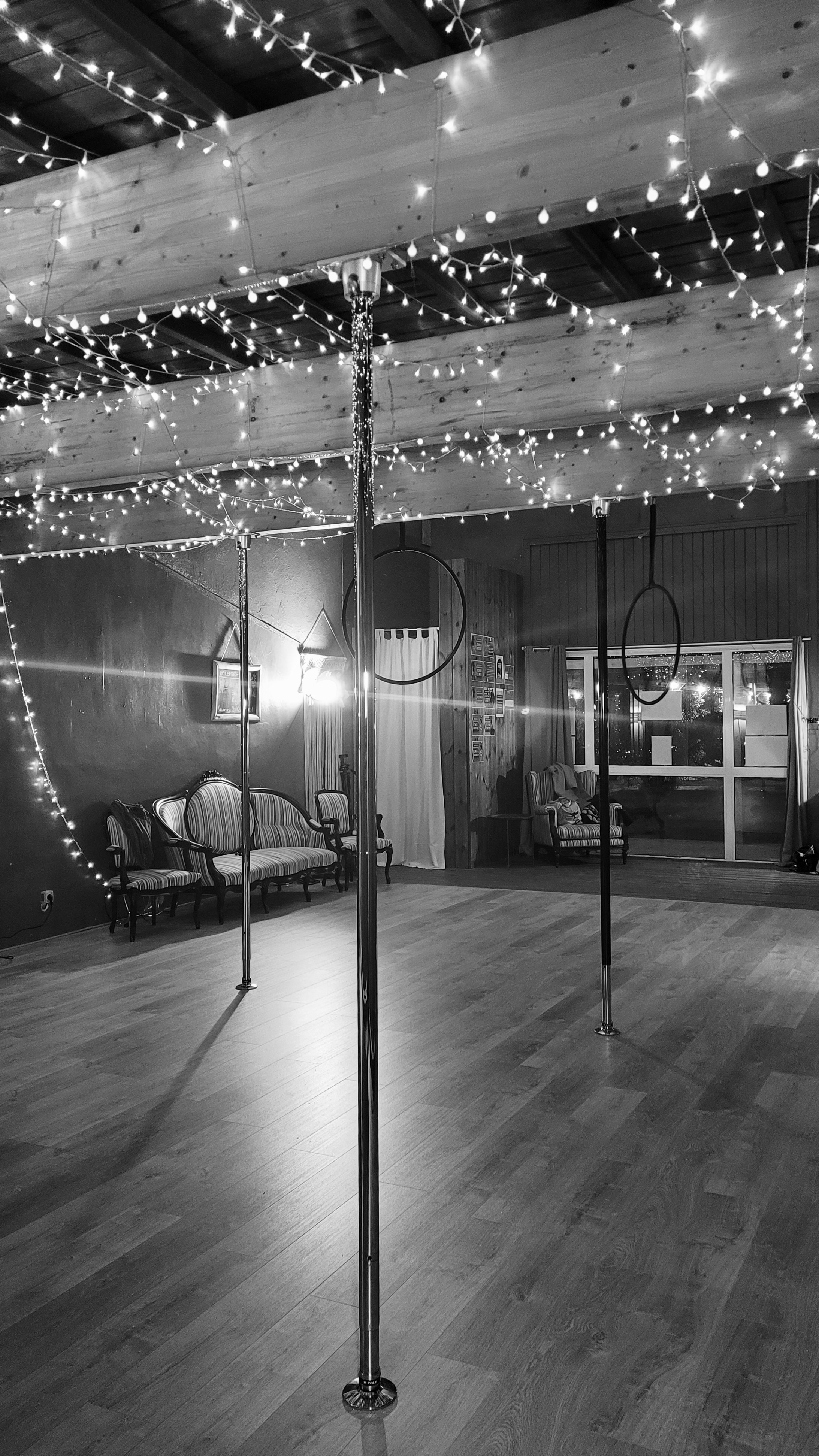 Aux portes du Bassin d'Arcachon, 5 barres de pole dance et 3 cerceaux aériens